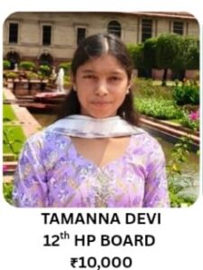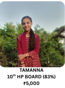 तमन्ना देवी भरमौर को 88.6% (हिप्र स्कूल शिक्षा बोर्ड) पर 10,000 रुपये की छात्रवृत्ति प्नदान की गई है । तमन्ना के पिता का निधन हो चुका है और उनकी परवरिश उनकी माता अकेले कर रही हैं। तमन्ना वर्तमान में दिल्ली विश्वविद्यालय के आईपी कॉलेज में पढ़ रही हैं।