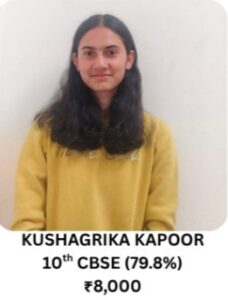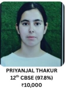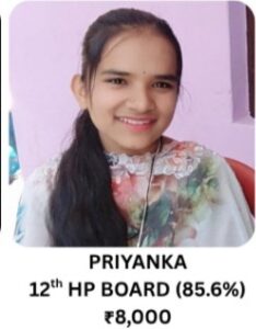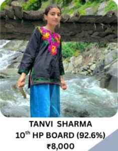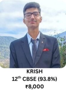 जमा दो की सीबीएससी की वार्षिक परीक्षा में कृष जोकि पालमपुर के रहने वाले है, को 93.7% अंक प्राप्त करने पर 8,000 रुपये की छात्रवृत्ति।