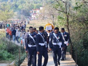 घोघड़,धर्मशाला, 23 नवम्बर : तेजस विमान हादसे में शहीद हुए फ़्लाइट लेफ्टिनेंट नमांश स्याल का पार्थिव शरीर जब शनिवार को उनके पैतृक गाँव पटियालकर पहुंचा, तो पूरा क्षेत्र शोक, गर्व और भावनाओं से अभिभूत हो उठा। सुबह से ही ग्रामीण, जनप्रतिनिधि और विभिन्न विभागों के अधिकारी गाँव में एकत्र हुए और अपने वीर बेटे को श्रद्धांजलि अर्पित की।