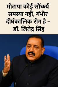डॉ. जितेंद्र सिंह ने बताया कि भारत में गैर-संचारी रोगों की बढ़ती संख्या चिंता का विषय है, जिनका लगभग 63 प्रतिशत योगदान कुल मृत्यु दर में है और इनमें से अधिकांश किसी न किसी रूप में मोटापे से जुड़े हैं। टाइप-2 मधुमेह, हृदय रोग और कुछ प्रकार के कैंसर का सीधा संबंध मोटापे से है। उन्होंने विशेष रूप से भारतीयों में पाए जाने वाले केंद्रीय (आंतरिक) मोटापे को गंभीर जोखिम कारक बताया, जो शरीर के कुल वजन से अलग भी स्वास्थ्य के लिए खतरा बन सकता है।