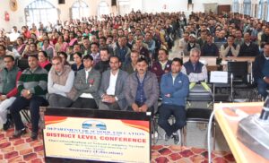 घोघड़, चम्बा, 20 नवम्बर : राजकीय स्नातकोत्तर महाविद्यालय चंबा में आज स्कूल कॉम्प्लेक्स प्रणाली को प्रभावी रूप से लागू करने के उद्देश्य से जिला स्तरीय सम्मेलन आयोजित किया गया। सम्मेलन की अध्यक्षता सचिव मुख्यमंत्री, शिक्षा, ऊर्जा, सूचना एवं जनसंपर्क तथा भाषा एवं संस्कृति विभाग राकेश कंवर ने की। उपायुक्त मुकेश रेपसवाल भी इस अवसर पर उपस्थित रहे।