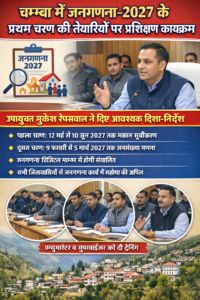 घोघड़, चम्बा, 13 मार्च : जिला चम्बा में जनगणना–2027 के प्रथम चरण हाउस लिस्टिंग ऑपरेशन की तैयारियों को लेकर जिला स्तरीय प्रशिक्षण कार्यक्रम आयोजित किया गया। कार्यक्रम की अध्यक्षता उपायुक्त Mukesh Repswal ने की।