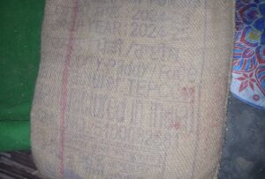 बोरी पर चावल की फसल का वर्ष 2024-25 अंकित किया गया है।