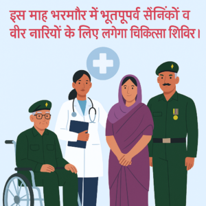 उन्होंने भूतपूर्व सैनिकों के परिजनों और वीर नारियों से आग्रह किया गया है कि वे इस चिकित्सा शिविर में उपस्थित होकर अपना स्वास्थ्य परीक्षण कराएं और आवश्यक परामर्श व दवाइयाँ प्राप्त करें।