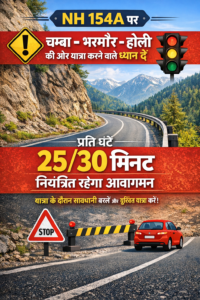 घोघड़, चम्बा, 6 मार्च : राष्ट्रीय उच्च मार्ग-154ए चक्की–चम्बा–भरमौर मार्ग पर मैहला घार के समीप चल रहे भूस्खलन रोकथाम कार्यों के कारण वाहनों की आवाजाही को अस्थायी रूप से नियंत्रित किया जाएगा। जिला दंडाधिकारी मुकेश रेपसवाल ने जनहित और सुरक्षा को ध्यान में रखते हुए इस संबंध में आदेश जारी किए हैं, जो 31 मार्च 2026 तक प्रभावी रहेंगे।